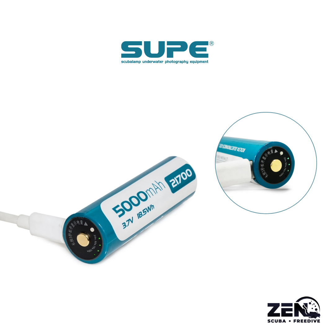 The RD90v2 has been tested to 100m and this great light uses 21700 Li-Ion battery (included). Burning time is up to 3hours. One time charging, one day diving.