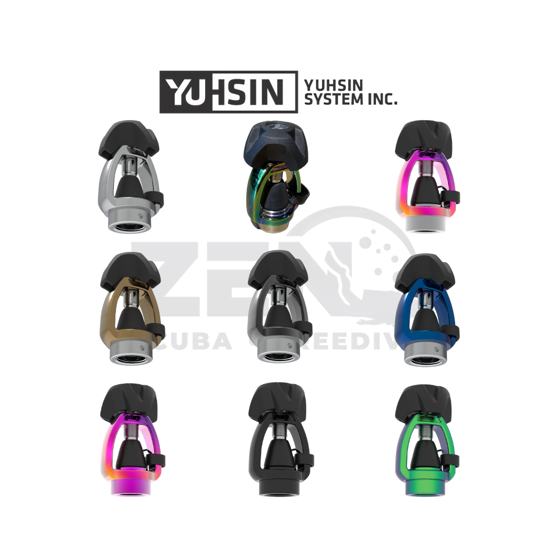 Yuhsin DIN to YOKE Converter First Stage Regulator Adapter/Converter enables a 200 Bar or 300 Bar DIN first stage regulator to be connected to a cylinder with an international Yoke (‘A’) clamp cylinder K-valve without the need for tools.