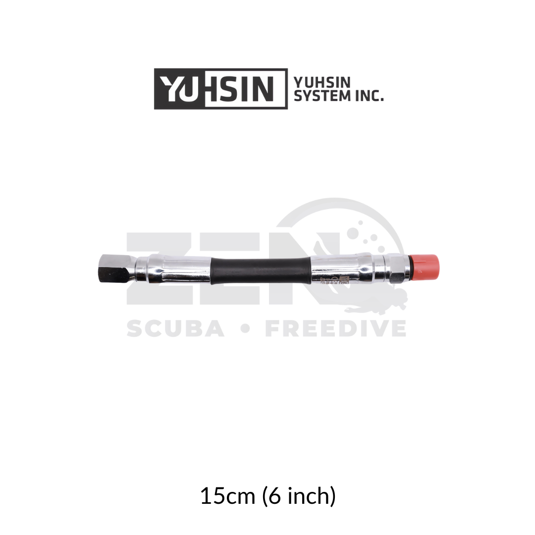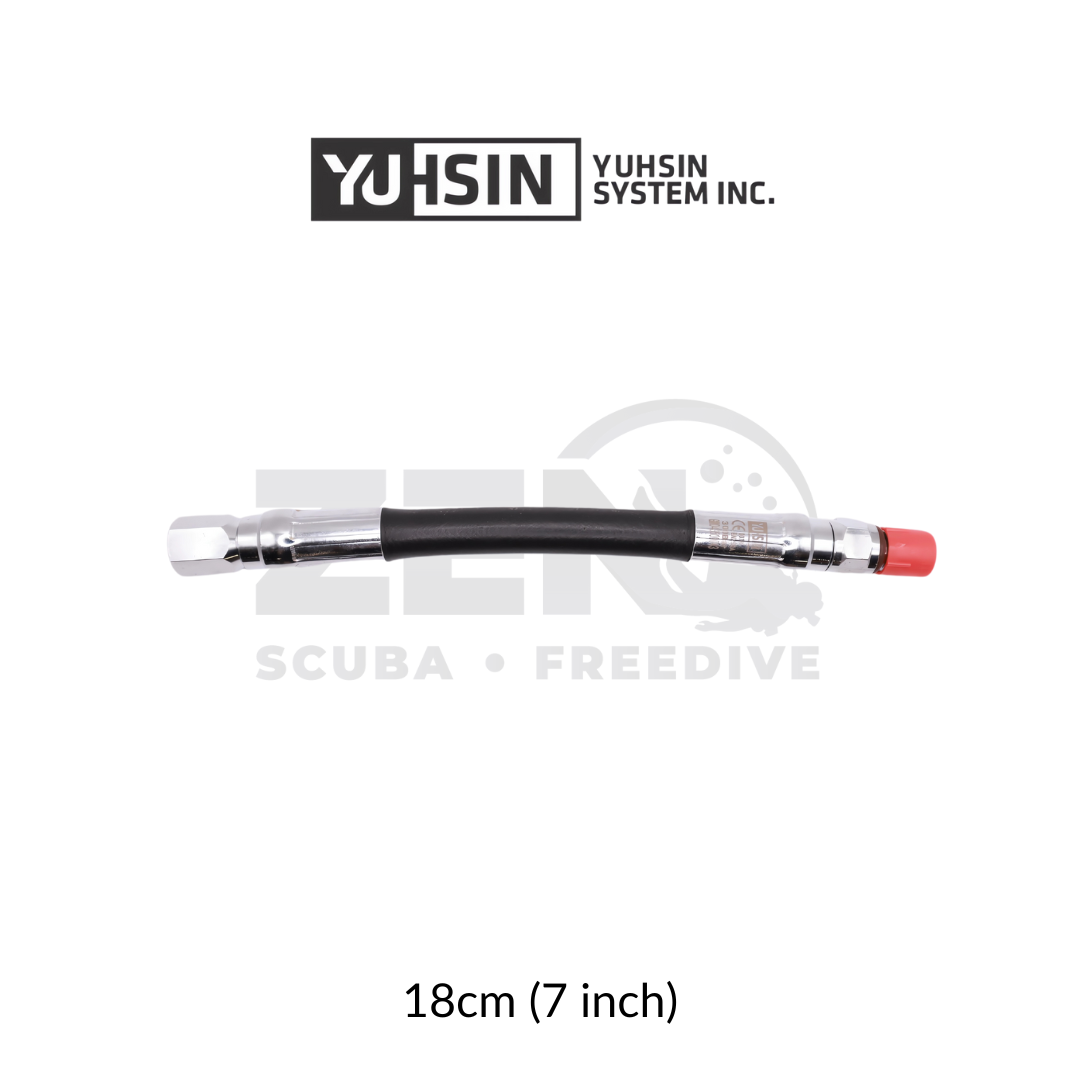 The YUHSIN HP Gauge Hose is crafted from marine-grade brass with a military-grade chrome finish, ensuring exceptional corrosion resistance and long-lasting performance.